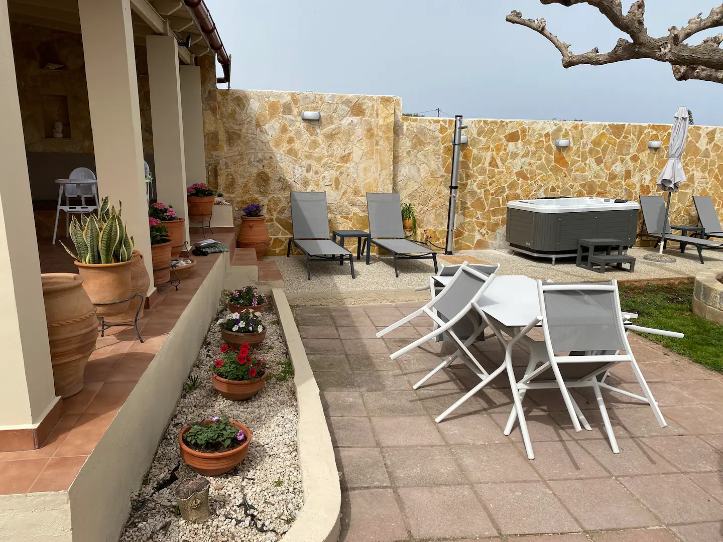 Mano's house is located to Stavros area, 3 min walking distance from the beach and 15 km from the city of Chanea. It has a big yard with garden privateand from balcony a panoramic sea view. In the yard there is a jacuzzi for 2 persons.
